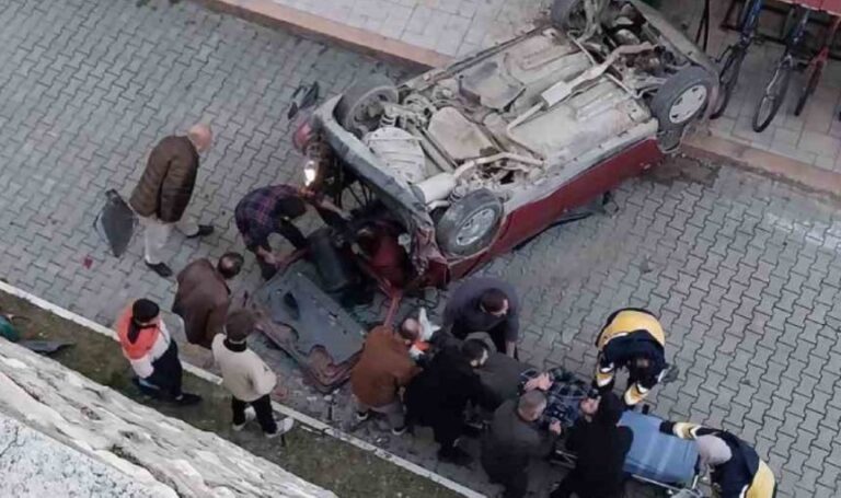 Yanlışlıkla ters taklanan otomobil istinat duvarından düştü: Sürücü ve yolcu yaralandı – Son Dakika Türkiye Haberleri